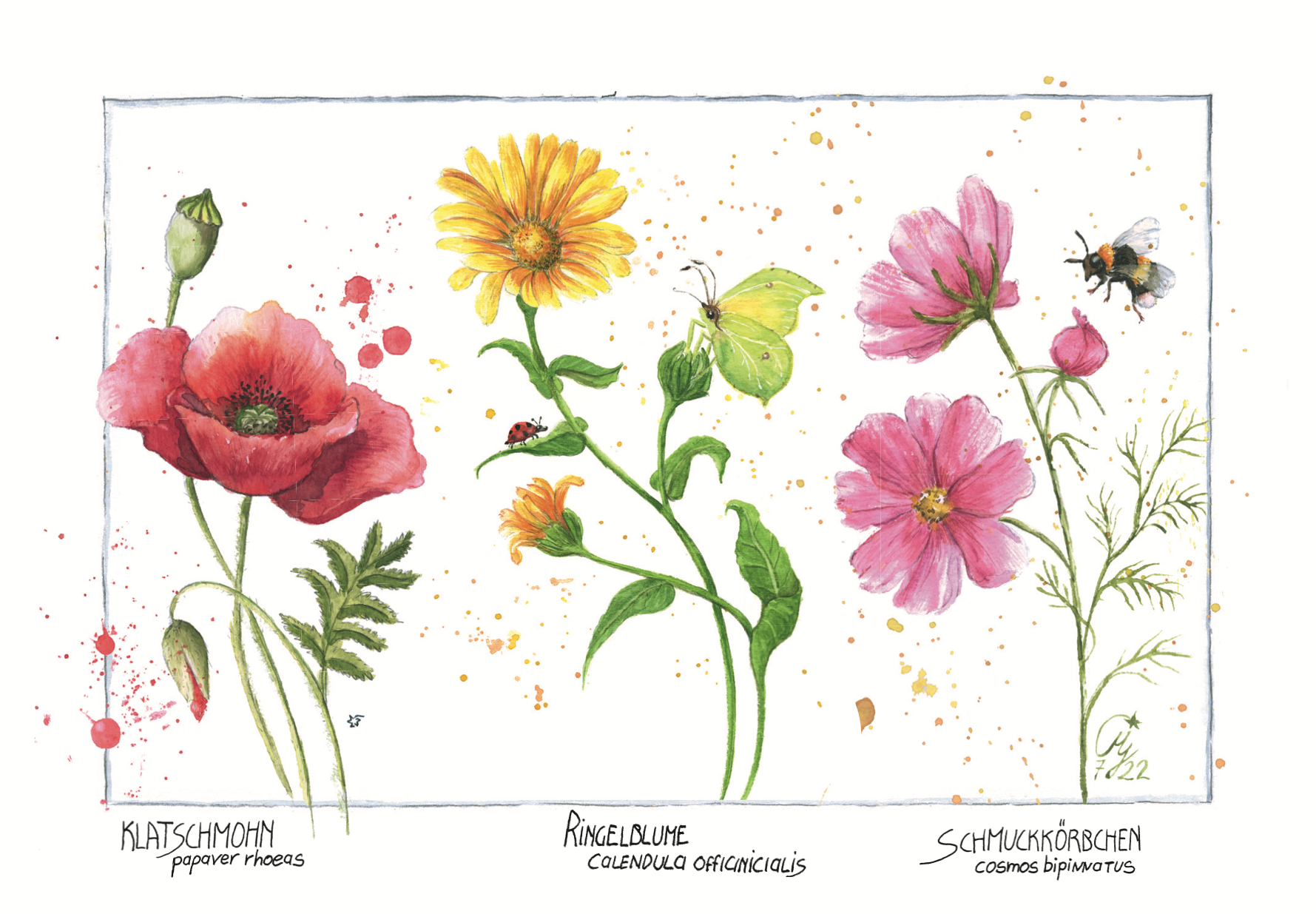 Meine Passion ist es viel in der Natur zu sein und mir Pflanzen, Insekten und heimische Tiere genauer anzusehen. Zuhause mache ich gerne aus den Entdeckungen und Eindrücken, die ich mitgebracht habe kleine Zeichnungen und Aquarelle. Besondere Freude macht es mir meiner Kreativität freien Lauf zu lassen... dann entstehen auch mal ganz lustige Bilder.